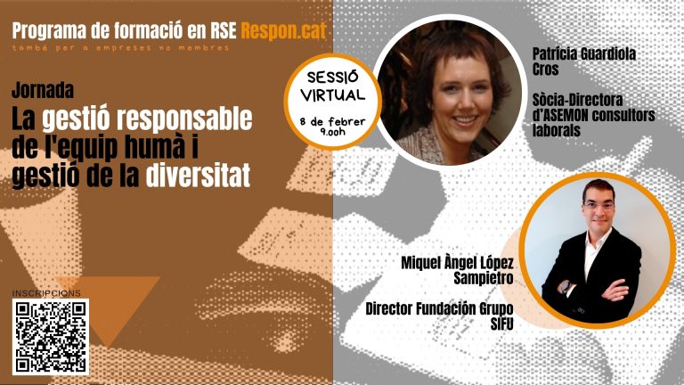El proper dijous 8 de febrer tindrà lloc la sessió virtual Jornada “La gestió responsable de l’equip humà i gestió de la diversitat”. Respon.cat organitza...Llegiu-ne més→