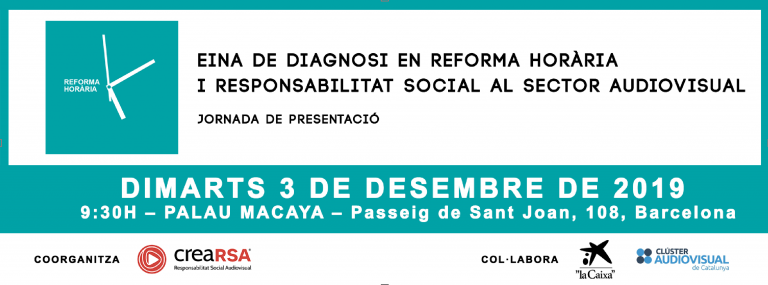 El proper 3 de desembre es presenta l'eina de diagnosi en Reforma Horària i Responsabilitat Social al sector audiovisial. La sessió està organitzada per la...Llegiu-ne més→