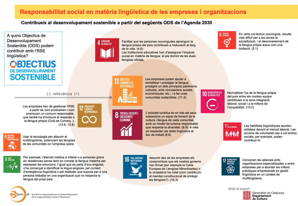 • La gestió lingüística és un element transversal que es correlaciona amb deu dels 17 Objectius de Desenvolupament Sostenible (ODS).