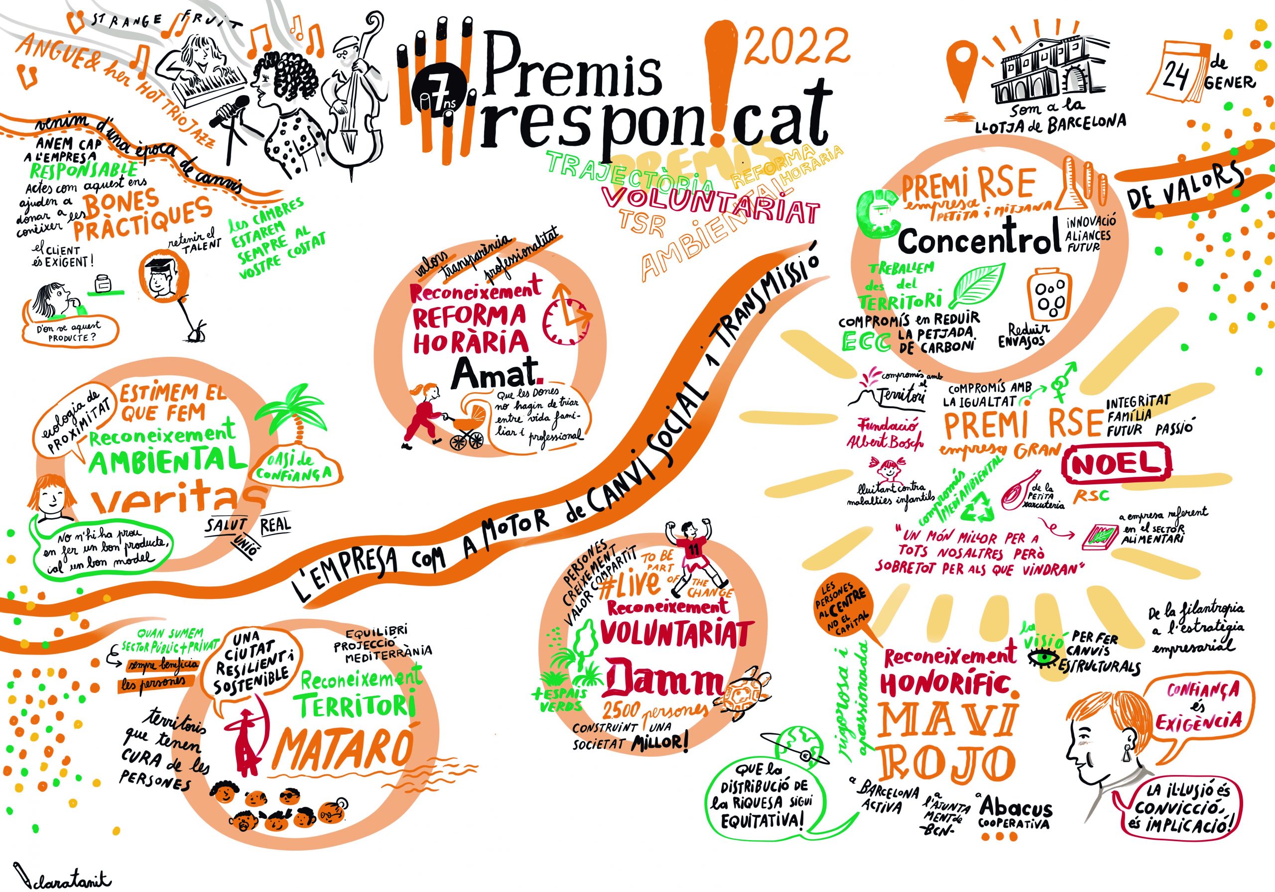 - El passat 24 de gener durant l’Acte de Lliurament de Premis Respon.cat 2022 es va elaborar un graphic recording, un es recull amb imatges un resum de l’esdeveniment.
