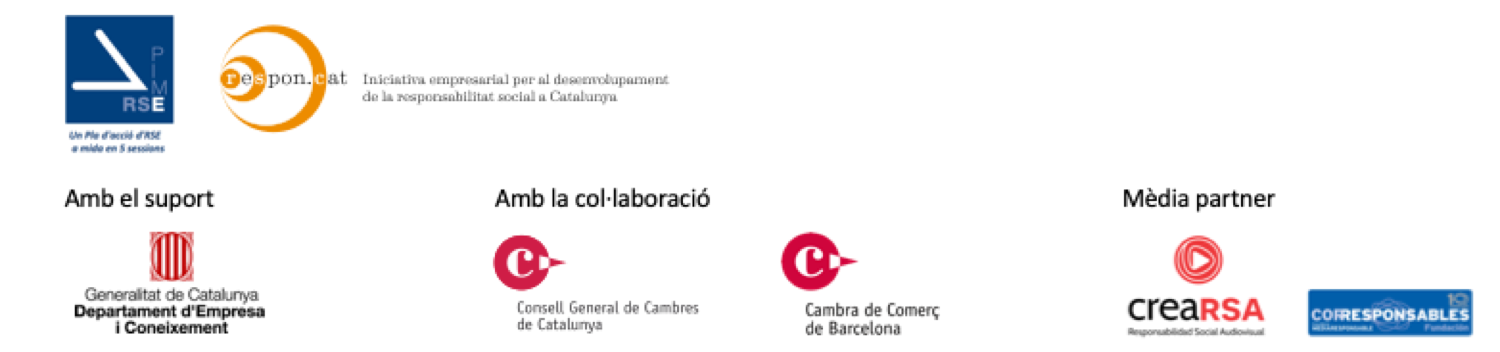 El Programa RSE.Pime l’organitza Respon.cat amb el suport del Departament d’Empresa i Coneixement de la Generalitat, i el suport del Consell de Cambres de Catalunya i la Cambra de Comerç de Barcelona.