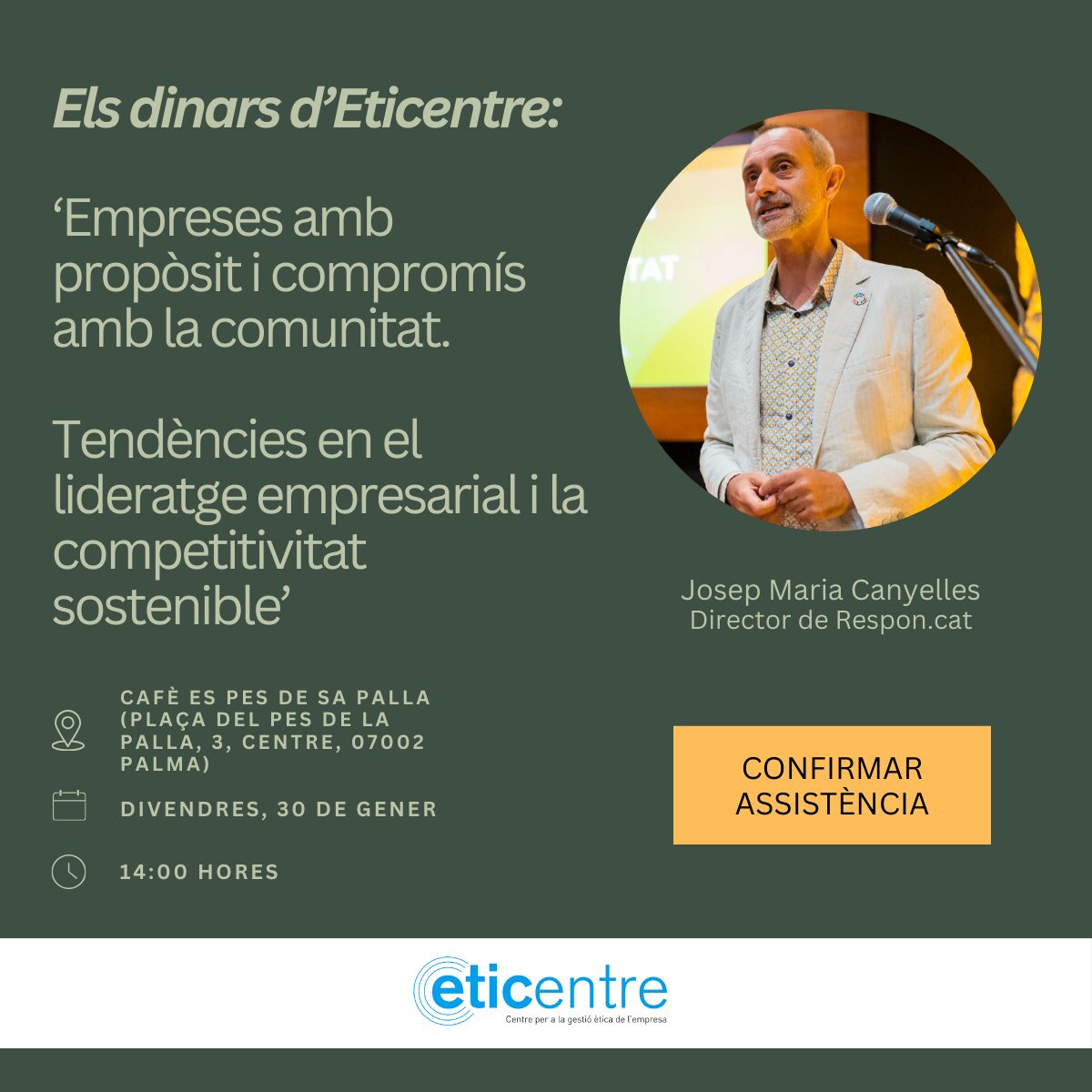 Josep Maria Canyelles, director de Respon.cat, serà avui als dinars a Eticentre, Centre per a la Gestió Ètica de l’Empresa, a Palma de Mallorca.