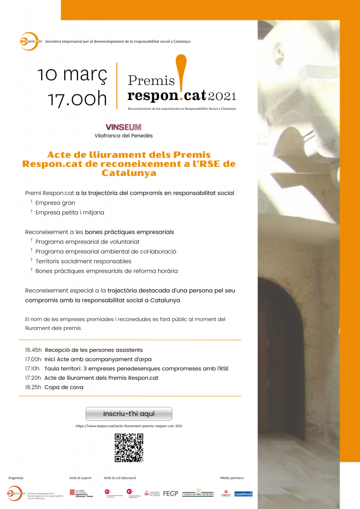 - El proper 10 de març a les 17.00h tindrà lloc l’Acte de lliurament dels Premis Respon.cat 2021 de reconeixement a l’RSE de Catalunya.