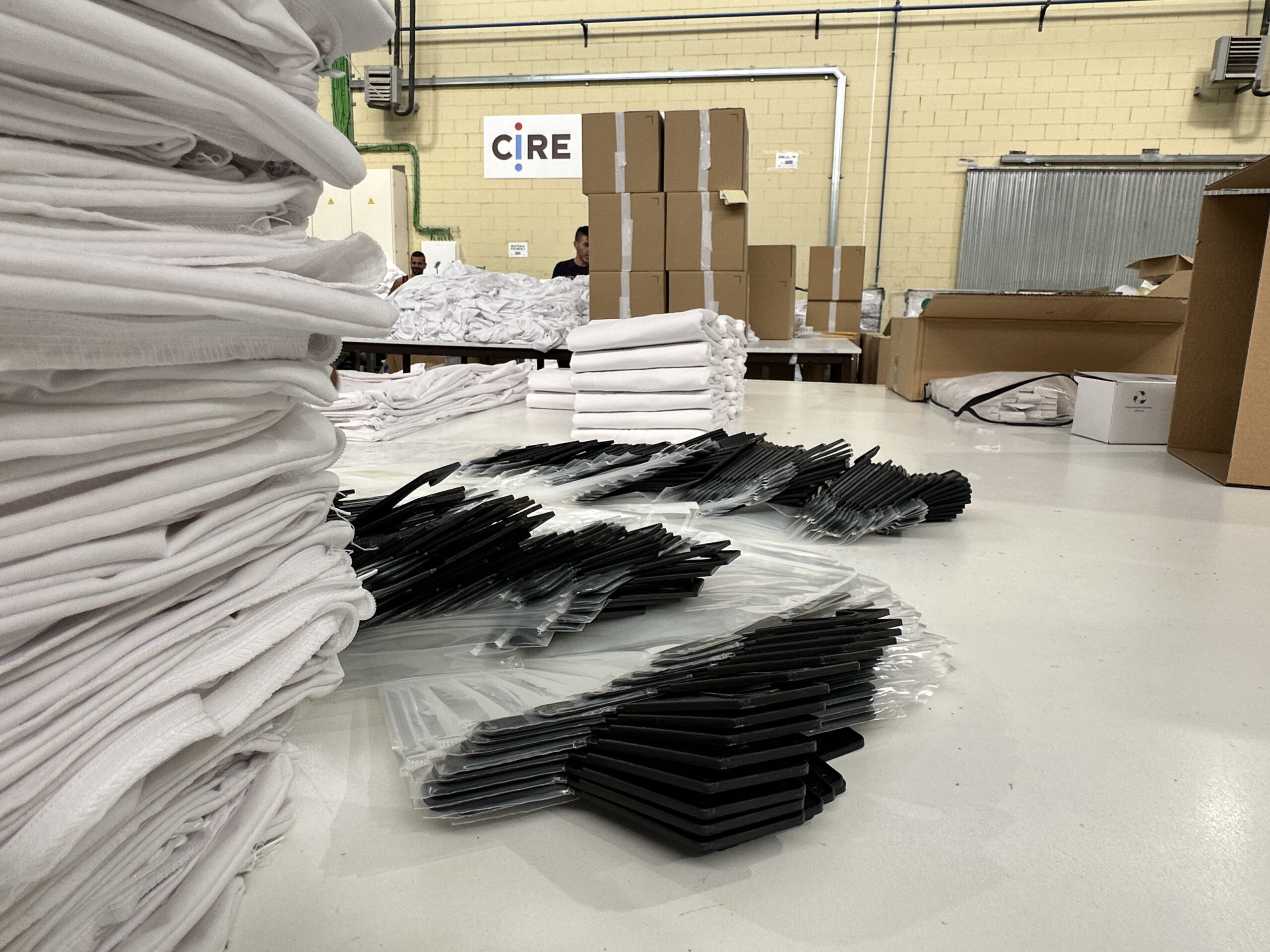 Actualment hi treballen 40 operaris a mitja jornada supervisats per un professional del CIRE. En èpoques de major càrrega productiva s’ha arribat a duplicar aquesta xifra de persones contractades. Al taller es confeccionen de mitjana mensual 25.000 unitats i es manipulen prop de 90.000.