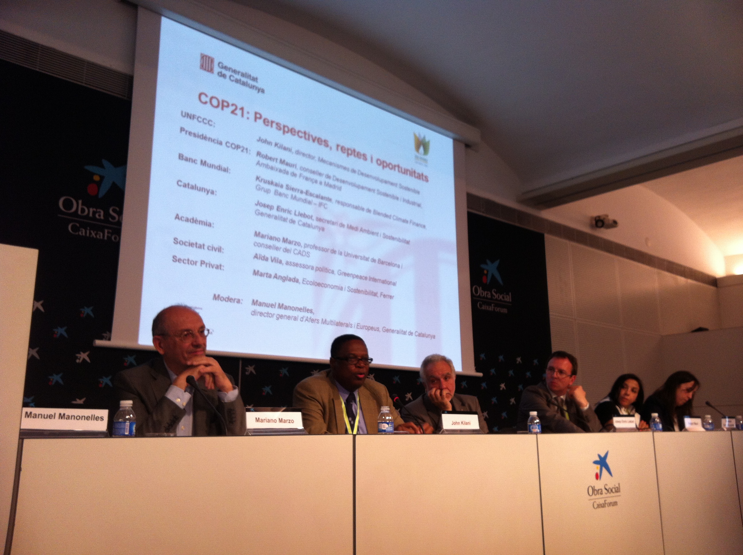 Prèviament han intervingut John Kilani, director d'UNFCCC Mecanismes de Desenvolupament Sostenible, que ha explicat els quatre pilars del COP21, i ha demanat de no atendre tant als reptes com a les oportunitats. Robert Mauri, president del COP21, conseller de Desenvolupament Sostenible i Industrial a l'Ambaixada de França a Madrid, ha explicat algunes iniciatives del govern francès, com les relacionades amb l'habitatge; i Kruskaia Sierra-Escalante, responsable de Blended Climate Finance del Banc Mundial – IFC.