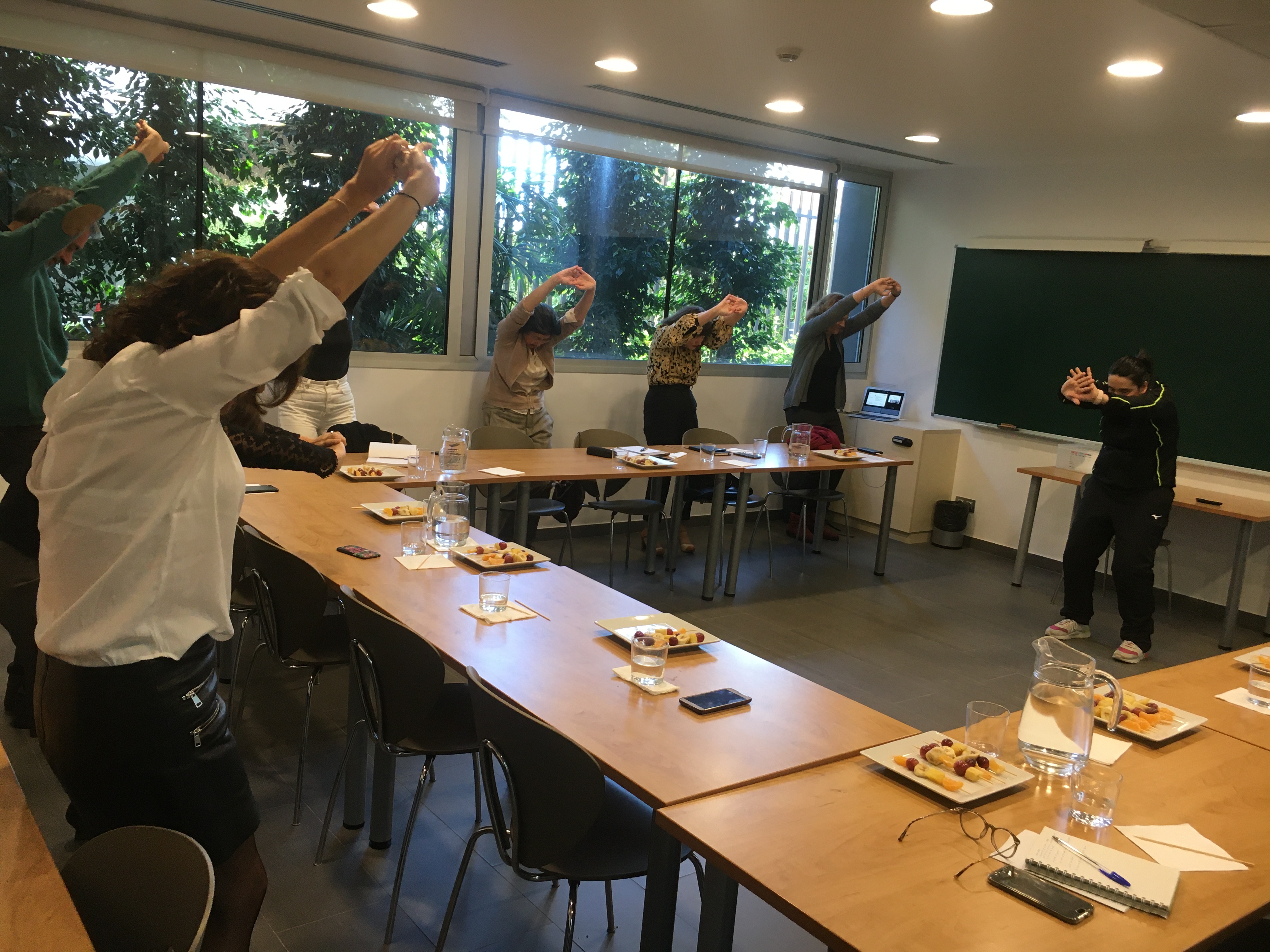 - Durant el taller, s’ha fet un tastet d’una sessió pràctica de millora d'hàbits posturals a càrrec d'una persona experta en aquesta matèria de la mà de Club esportiu Claror.