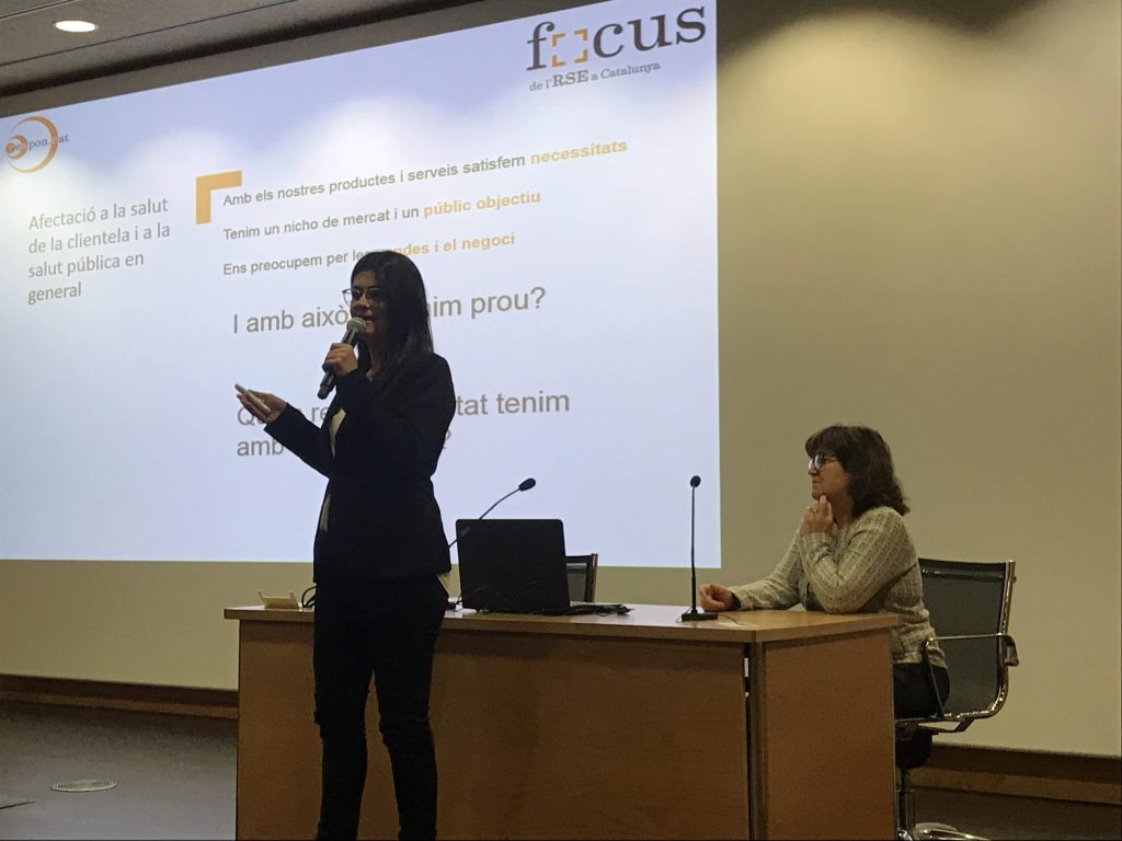 - Ester Benach (Fundació Claror) ha aprofundit en la responsabilitat de les empreses saludables envers la salut de la clientela i la salut pública en general i Anna Fornt (Grup Papelmatic) ha compartit també les seves pràctiques en la matèria.