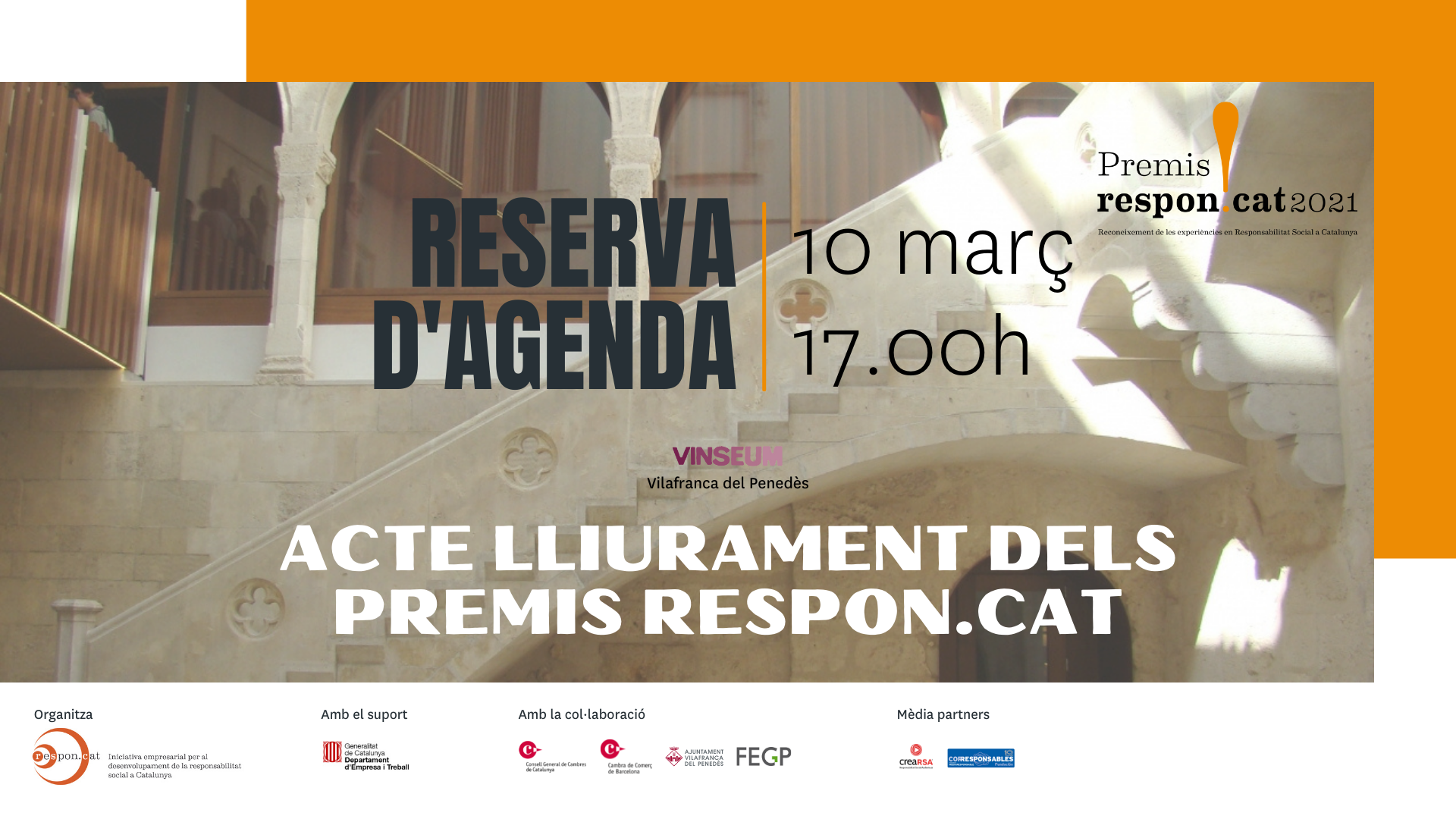 RESERVA D’AGENDA | 10 març ? Acte de lliurament dels Premis Respon.cat 2021 a Vinseum
