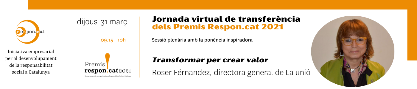 - El proper 31 de març Roser Fernández, directora general de La Unió, oferirà la ponència inspiradora “Transformar per crear valor compartit” a la sessió plenària matinal de la Jornada virtual de transferència dels Premis Respon.cat.