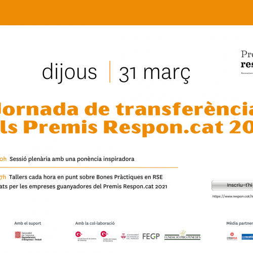 El Programa RSE.Pime, està promogut per Respon.cat, amb la col·laboració del Consell de Cambres de Comerç de Catalunya i l’Obra Social “la Caixa” i el suport del Departament d’Empresa i Coneixement de la Generalitat de Catalunya.