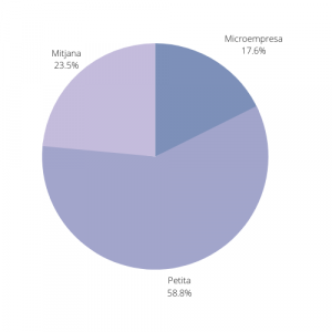 - La selecció d’organitzacions incorpora cinc microempreses, onze empreses petites i dues empreses mitjanes, de diferents territoris catalans i diversos sectors d’activitat.