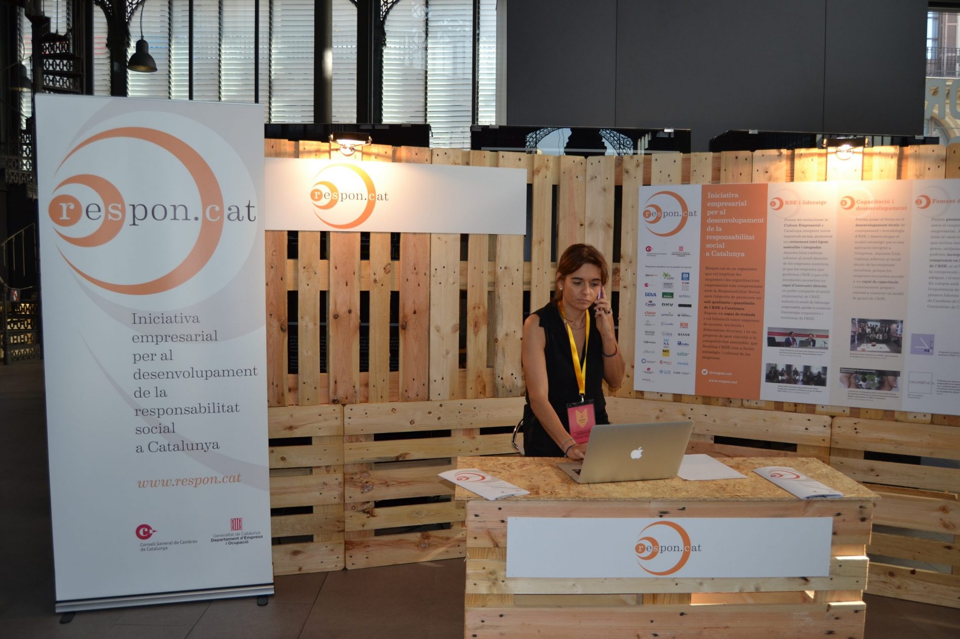 L'estand de Respon.cat estava situat a la zona de plataformes promotores de la responsabilitat social, i disposava d'un rollup amb la identificació i un cartell fer per a l'ocasió amb la descripció de la iniciativa, les línies d'acció i els logos de les 34 empreses membres.